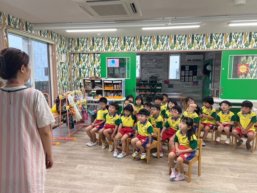 今月のクッキング 食育の一環として毎月行っているクッキングがありました。 今月はカレーライスの具材の野菜の型抜きをしました。 朝の会の絵本の読み聞かせの時間に今回作るカレーライスのお話の絵本を見ました。